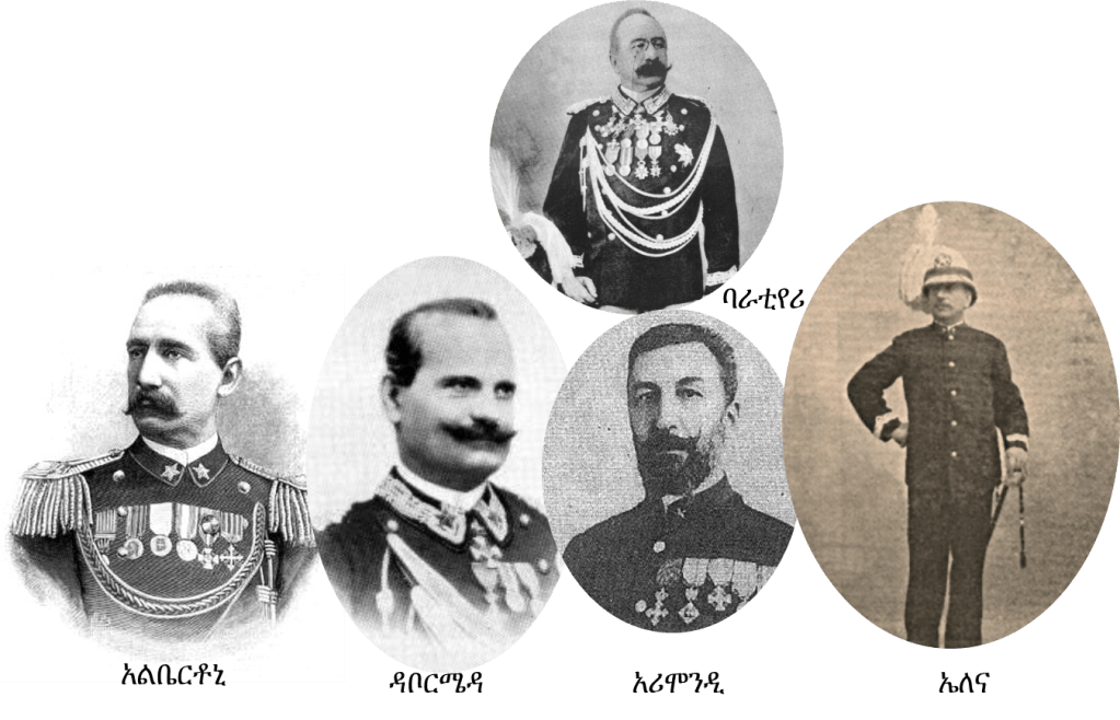 | የኢጣልያን ጦር በዋናነት የሚመራው ጄኔራል ባራቲየሪ | 5000 አካባቢ የሚሆኑ ወታደሮች |